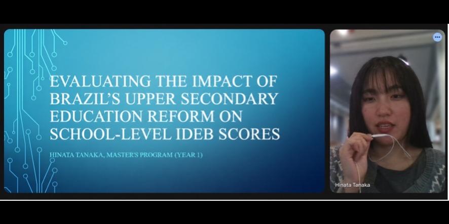 2025年12月12日から2026年3月20日にかけて、Danilo Leite Dalmon博士のご指導のもと、ブラジルの高等中等教育改革に関する研究インターンシップを実施しました。本インターンシップでは、ブラジルにおける高等中等教育改革、特に全日制高等中等教育の拡大と学校レベルのBasic Education Development Index data (IDEB) 成績との関係に焦点を当て、量的分析を行いました。本インターンシップの主な目的は、量的分析の実践的なスキルを向上させるとともに、ブラジルの教育制度が直面する現状や構造的課題について理解を深めることでした。具体的には、全日制教育の導入が学校レベルの教育成果の改善と関連しているかどうかを検討しました。